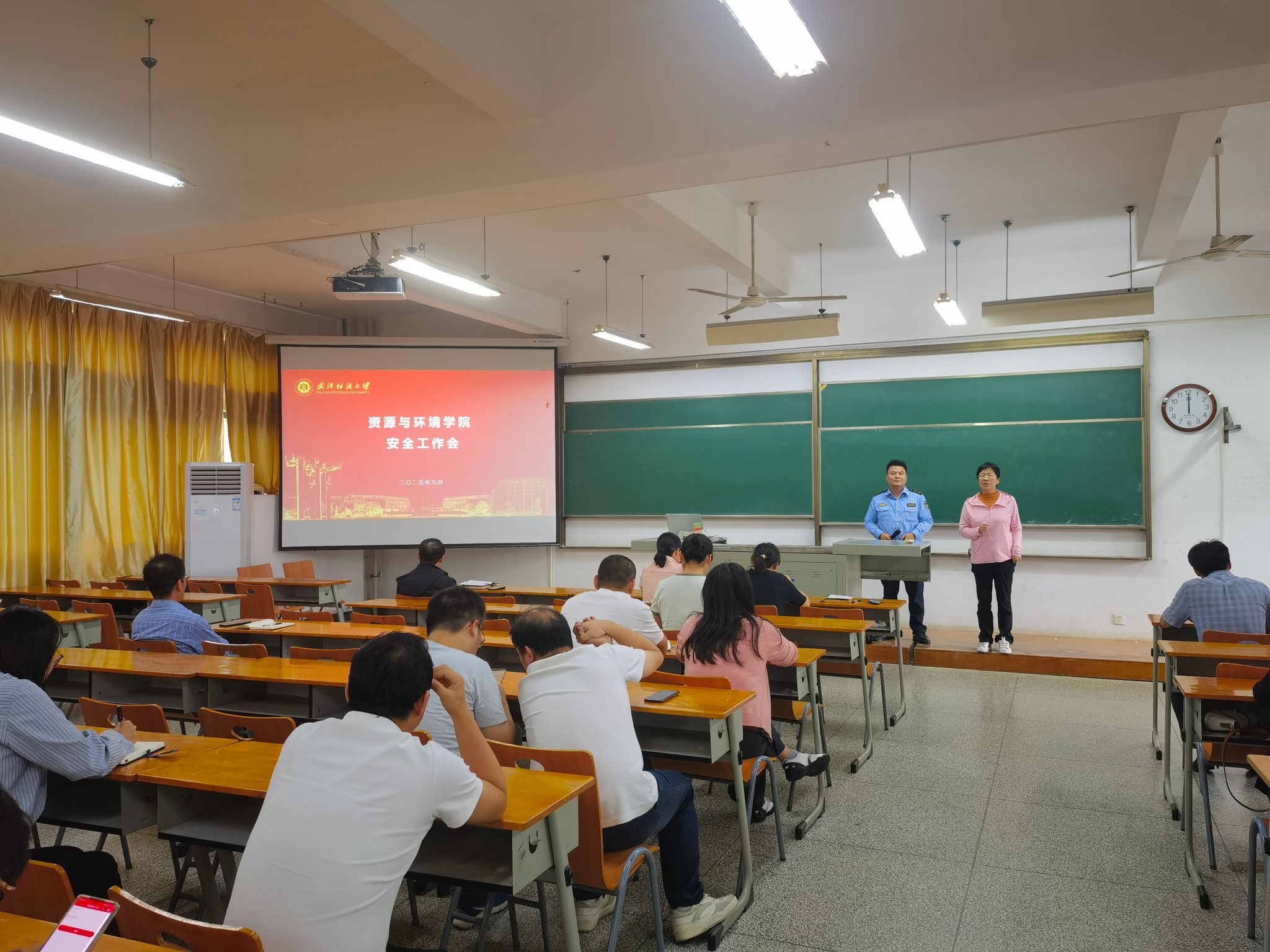 9 月 25 日下午,资源与环境学院在崇礼楼 221 教室召开新学期实验室安全工作会,学院党委书记谢晓萍主持会议,学院全体教职工参加。